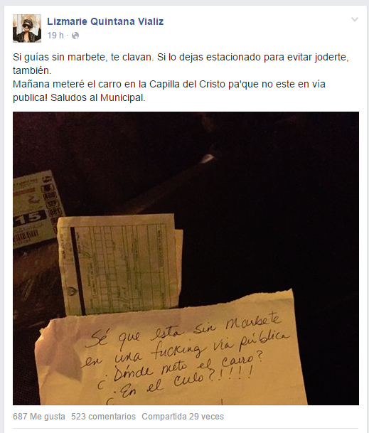 Lizmarie Quintana posteo en su Facebook su mensaje para el policía,.