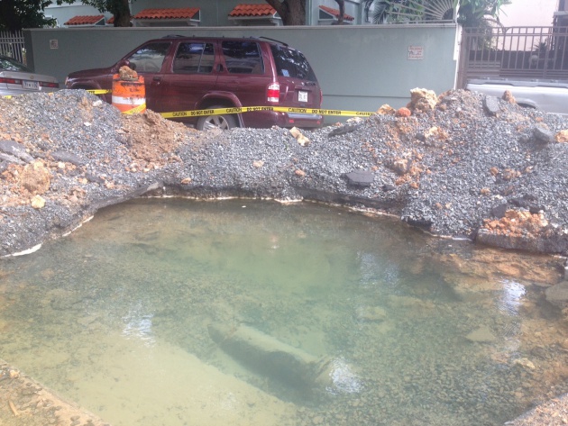 El licenciado Rafael Rivera, del edificio contiguo Condado Gardens, aseguró que desde el domingo se han hecho más de 14 llamadas para que la AAA resuelva el problema, pero que todavía sigue la pérdida de líquido por el salidero que hay en el lugar.