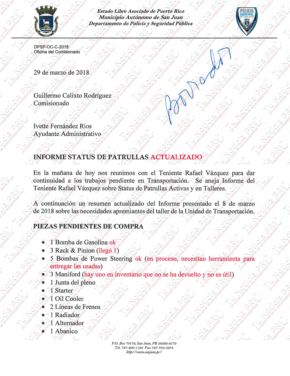 Vea el documento que demuestra la debacle de patrullas en San Juan.