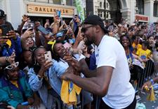 El alero Kevin Durant, ganador del premio de Jugador Más Valioso (MVP) de las Finales por segundo año consecutivo, y el base Stephen Curry, se intercambiaron la posesión del Trofeo Larry O'Brien para mostrarlo a los aficionados que los vitorearon y que en ningún momento estuvieron interesados en ser "interactivos" con los jugadores sino en aclamarlos.