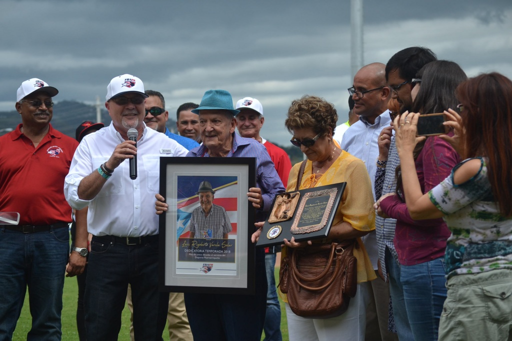 Previo al comienzo del partido, la Liga de Béisbol Superior Doble A honró la trayectoria del jubilado periodista deportivo Luis R. Varela, a quien se le dedica la temporada.