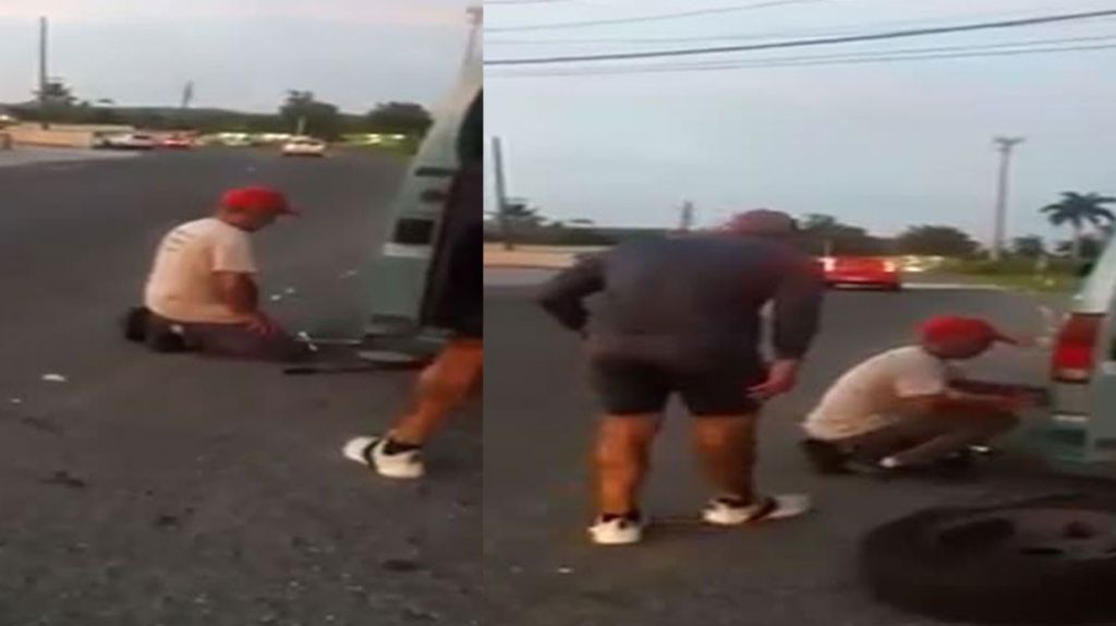 El púgil se percató de una pareja de personas mayores que tenían problema con una goma y este no solo les ayudo, le cambio la goma al auto.