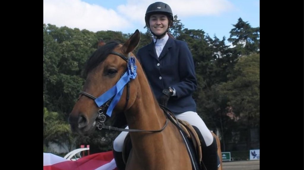 Shelby Duerig, junto a su caballo Garfield, lograron el primer lugar en la categoría Debutantes Mayores .50 metros.