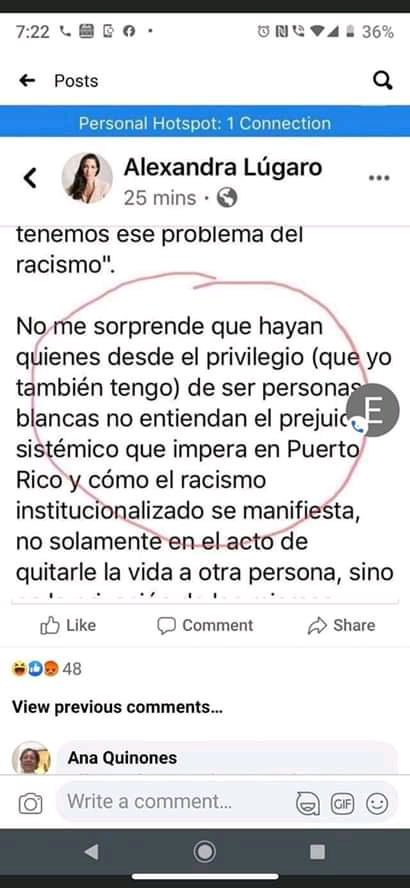 La candidata gobernación Alexandra Lúgaro se ha visto metida en tremenda candela luego que realizara unas expresiones en Facebook donde habla de que tiene el privilegio de ser una mujer blanca.