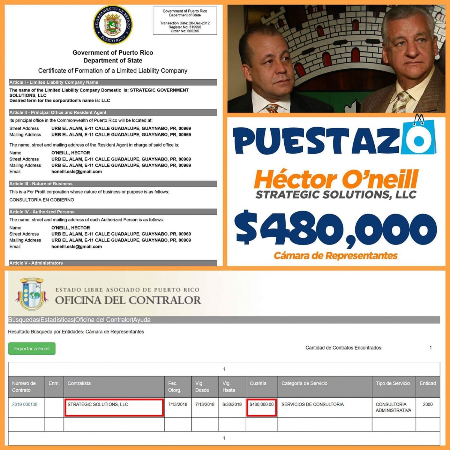 Las redes sociales se alborotaron hoy cuando trascendió la imagen de un contrato supuestamente otorgado al ex alcalde de Guaynabo Héctor O´Neill por $480,000 en la Cámara de Representantes.