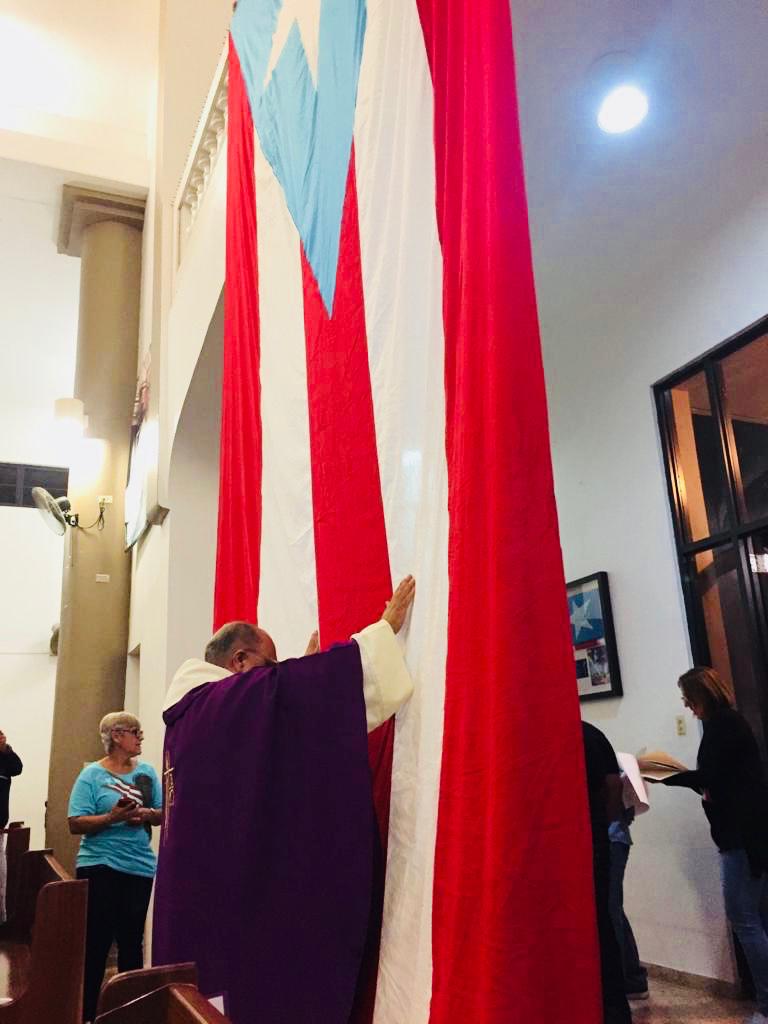El sacerdote exhortó a enarbolar la bandera puertorriqueña proclamando una patria virgen de las manchas de la corrupción, del crimen, de la soberbia del imperio y sus capataces colonizados, una patria virgen que no acepte que los ricos se queden con todo y echen a los pobres a la cuneta de la vida.