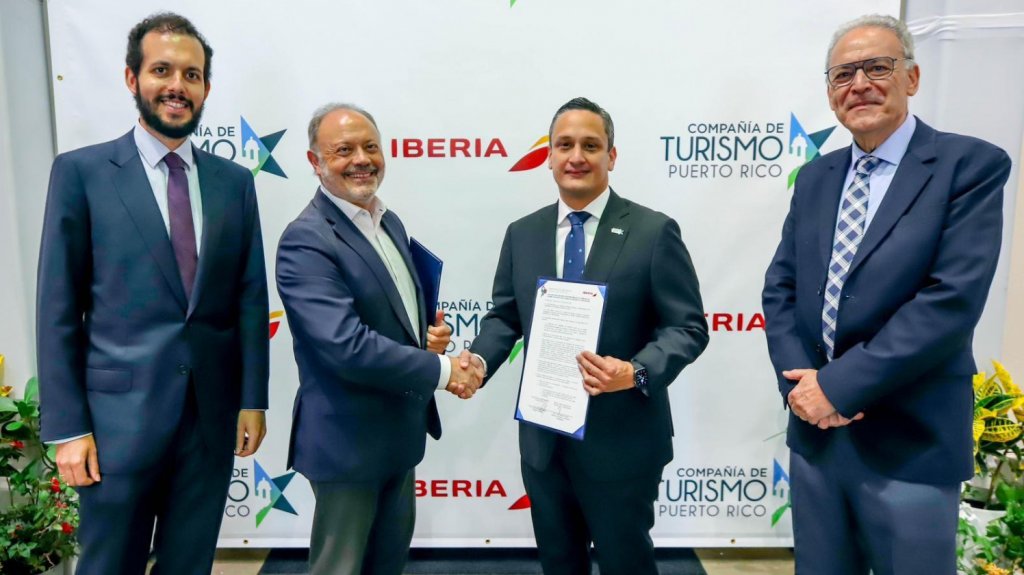 El director ejecutivo de la Compañía de Turismo de Puerto Rico (CTPR), Carlos Mercado Santiago, y Víctor Moneo Ocaña, director de Alianzas y Acuerdos Estratégicos de Iberia, anunciaron el jueves la firma de un nuevo Acuerdo de Colaboración para promocionar Puerto Rico como destino turístico a corto y largo plazo e incentivar el incremento de pasajeros desde mercados europeos como España, Alemania, Reino Unido, Italia y Francia.