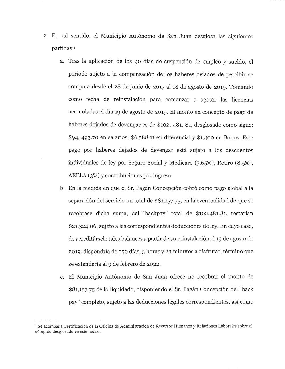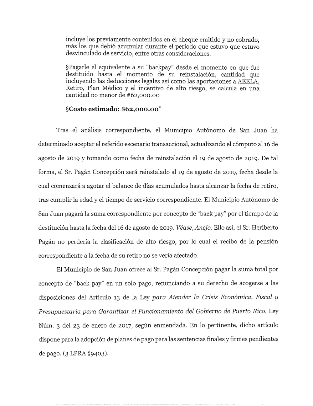 Tu Noticia PR supo que el inspector pidió que se cumpla con la orden del tribunal de reinstalarlo y darle los beneficios dejados de devengar, y que no está interesado en ninguna negociación.