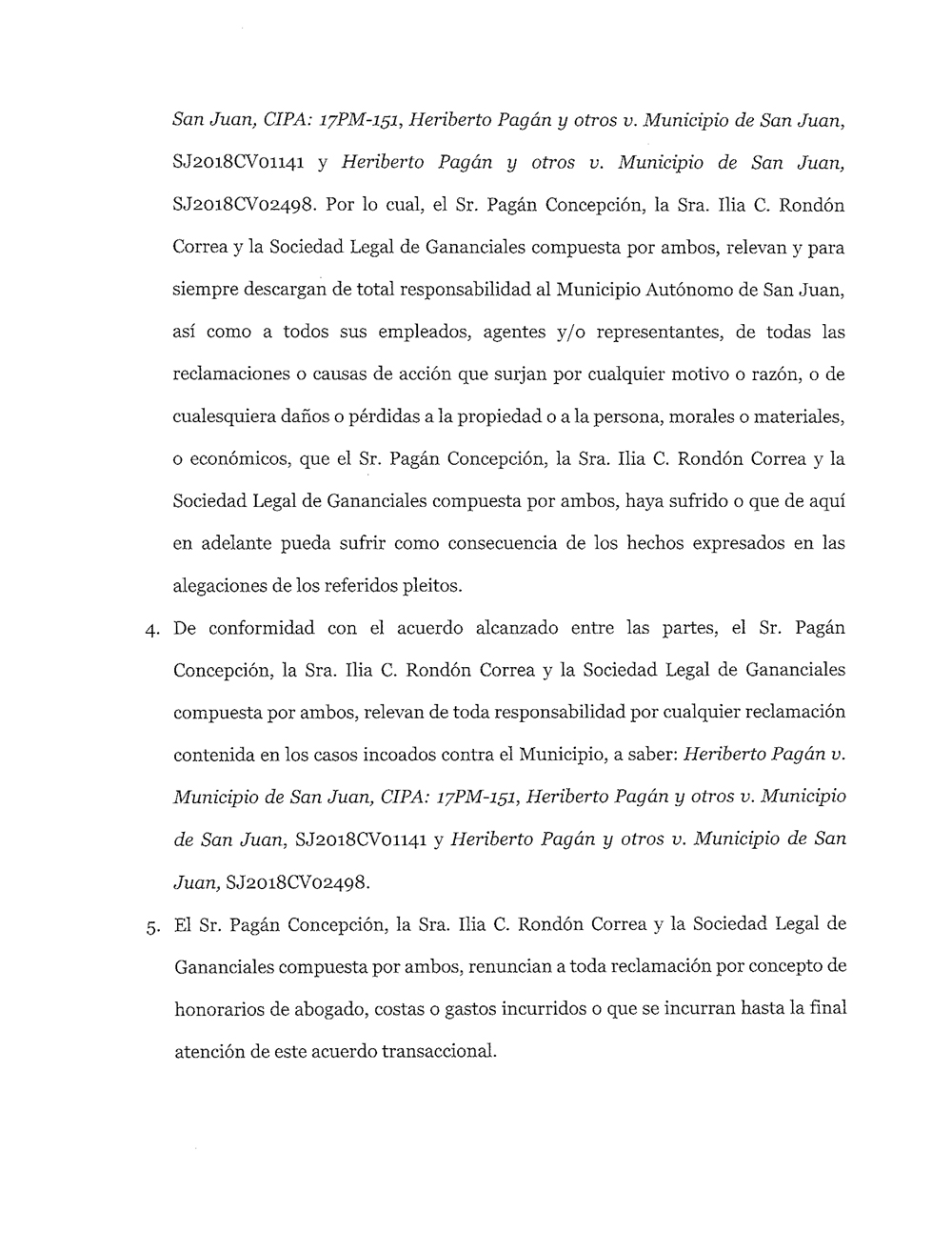 Ayer mismo la juez a cargo del "Madamus” de reinstalación concedió al municipio 5 días para una alegada contra oferta que el municipio le hace al inspector, identificado como Heriberto Pagán.
