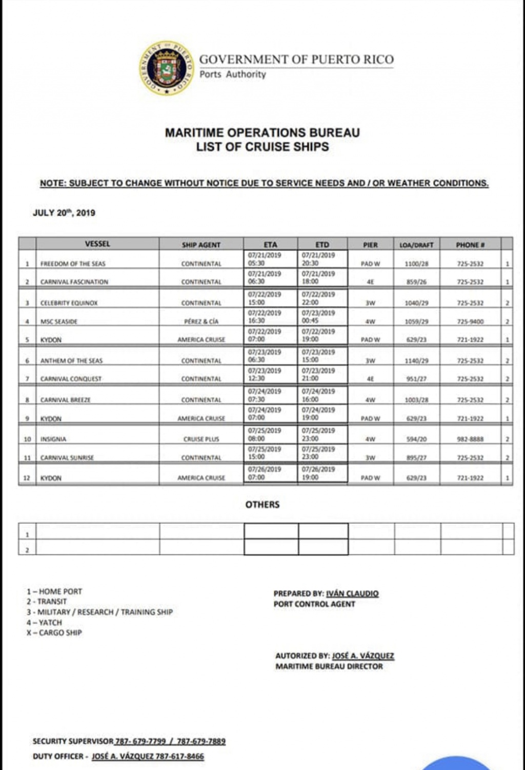 "A partir de este domingo y durante la próxima semana tendremos en San Juan la visita de 9 cruceros en distintos horarios, cuál es el plan del gobierno para garantizar las operaciones y la llegada de estos”, reclamó el representante en declaraciones escritas.