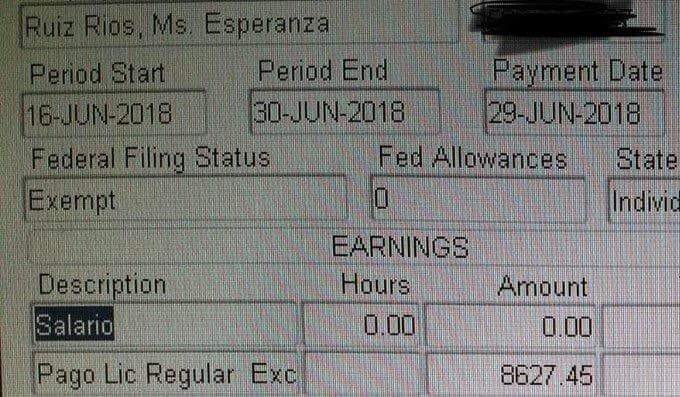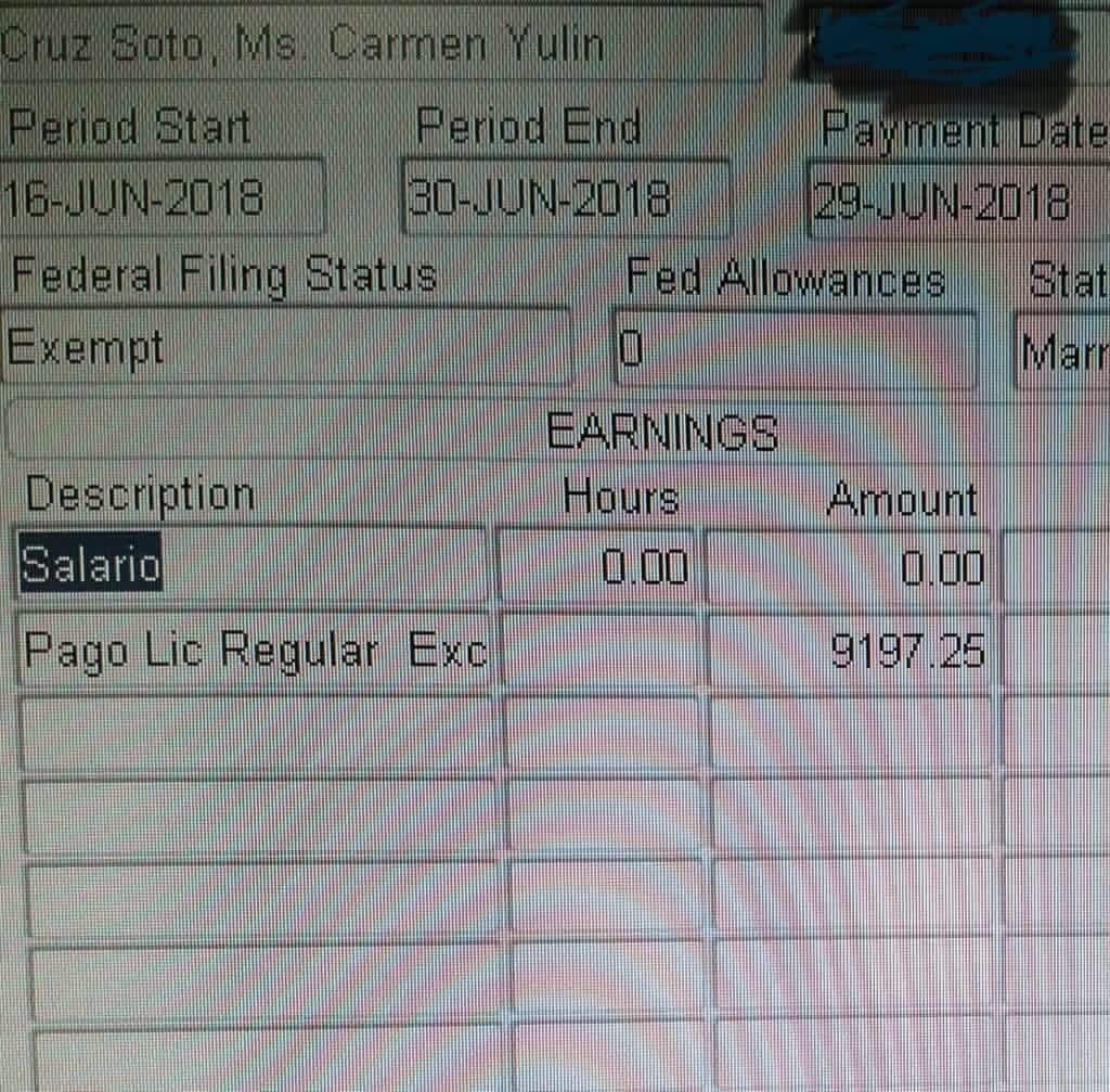 Empleados de la torre municipal en San Juan, publicaron en las redes sociales una foto de un monitor del área de nómina, que según ellos es el pago de exceso de vacaciones a la alcaldesa de San Juan Carmen Yulin.
