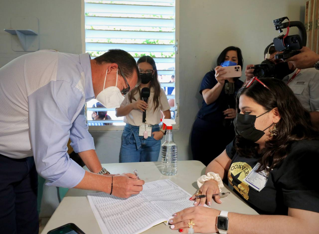 Edward O’Neill Rosa, candidato a alcalde por Guaynabo, ejerció su derecho al voto temprano en la mañana hoy en compañía de su hijo, Edward Andrés O’’Neill, en la escuela escuela Agustín Lizardi del barrio Hato Nuevo.