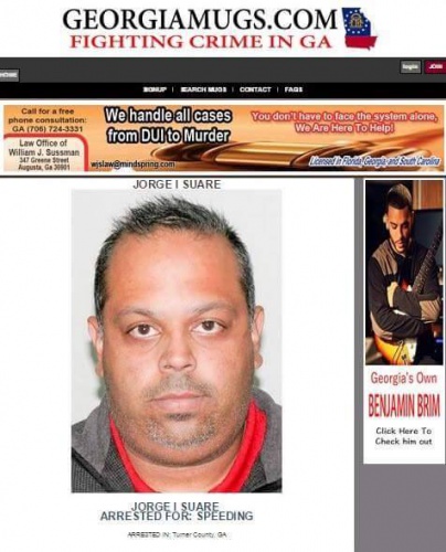 Una foto de quien se alega, es el secretario del partido popular Jorge Suarez permanece en la página de internet, de la policía de Georgia, luego de que este fuera arrestado y fichado por velocidad según la misma página.