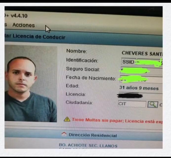 Copia de la licencia y otros documentos son mostrados en los videos que apoyan la candidatura de su oponente, donde según la fecha de la publicación Chevres poseía en ese entonces una licencia de conducir con fecha expirada.