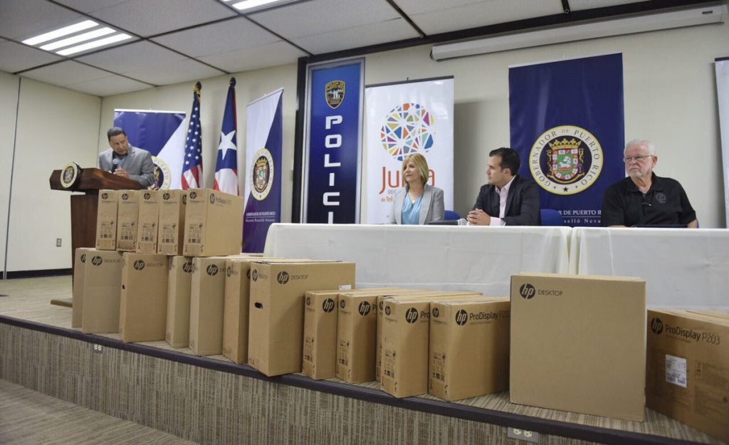 El acuerdo establece que se donarán 100 computadoras, que serán distribuidas entre 50 distritos y precintos policiacos en sobre 45 municipios.