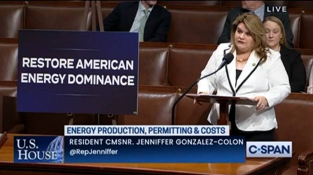 La comisionada residente, Jenniffer González Colón, abogó en la Sesión del martes por la aprobación del H.R. 1, la Ley de Costos de Energía más Bajos, la que catalogó como una "una legislación integral para restaurar y asegurar la independencia energética americana”.