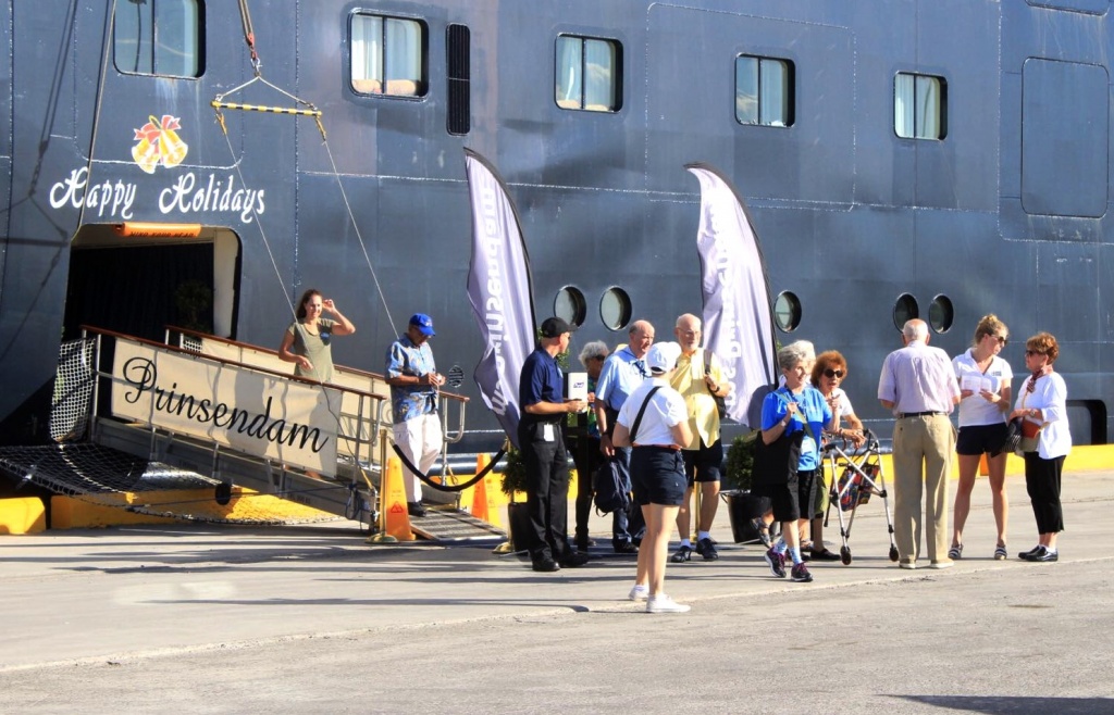 El Prinsendam, de la línea Holland America, arribó a las 8:00 de la mañana de hoy al puerto ponceño, y los pasajeros disfrutaron de una calurosa bienvenida al son de plena, vejigantes, bailes y música navideña.