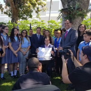 "Lo que aspiramos con esta reforma de educación es que jóvenes como ellos tengan más oportunidades”, dijo el mandatario como preámbulo a la firma del estatuto en La Fortaleza.