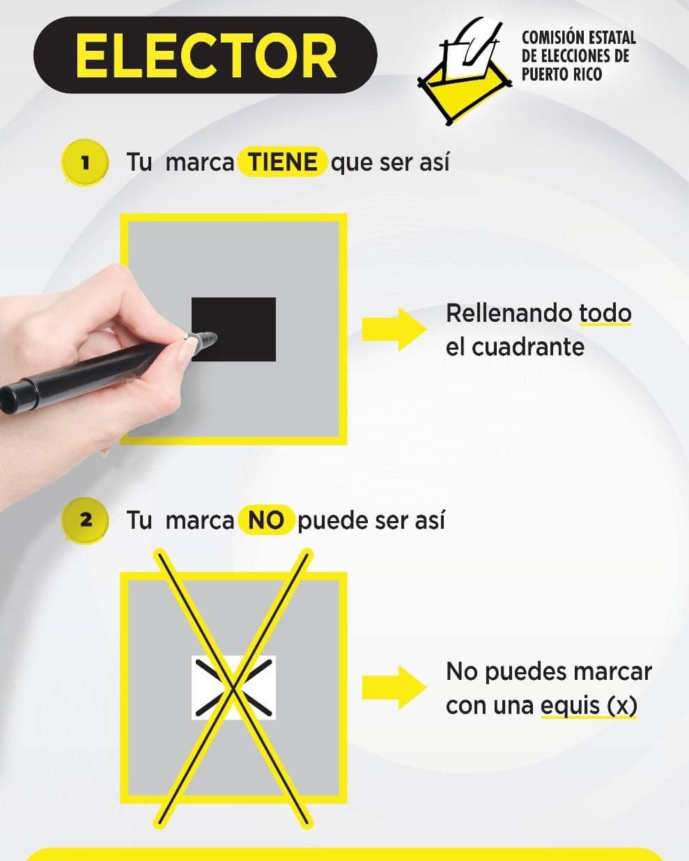 La presidenta de la Comisión Estatal de Elecciones (CEE), Jessika Padilla, hizo hoy un llamado a los votantes para que rellenen completamente los cuadrantes de sus papeletas, en lugar de marcar con una "X”, para asegurar que sus votos sean contabilizados correctamente. La exhortación se dio durante una conferencia de prensa mientras se realizaba el voto de los confinados.