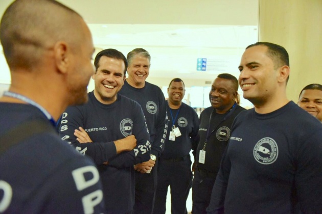 El gobernador Ricardo Rosselló Nevares acudió esta madrugada al aeropuerto internacional Luis Muñoz Marín para agradecer y dar su apoyo a una brigada compuesta por 15 rescatistas puertorriqueños que colaborarán en las labores de recuperación tras el paso del huracán Harvey por Texas.