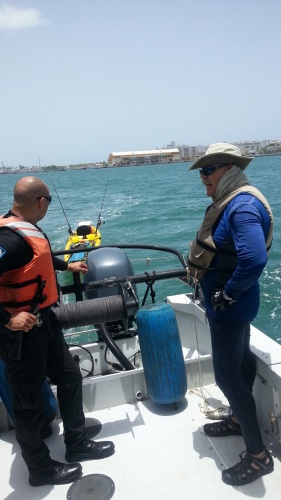 A las 2 de la tarde de ayer, los agentes Luis Pacheco, Javier Hernández, Jonathan Torres y Gabriel Cardona, en la unidad Cobra 62, junto a el sargento Mauras el teniente Delgado y otros agentes de la policia municipal de San Juan  acudieron a una milla náutica de Punta Las Marías en San Juan para rescatar a dos hombres.