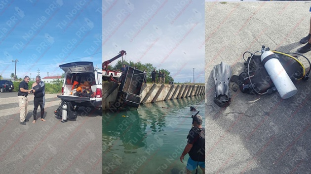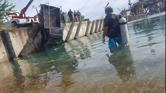 Los buzos Reynaldo Vega y Edwin Ruiz lograron recuperar el vehículo que fue sacado con grúa del mar. La operación de rescate fue supervisada directamente por Jesús Martes, director de la Oficina de Manejo de Emergencias del municipio.