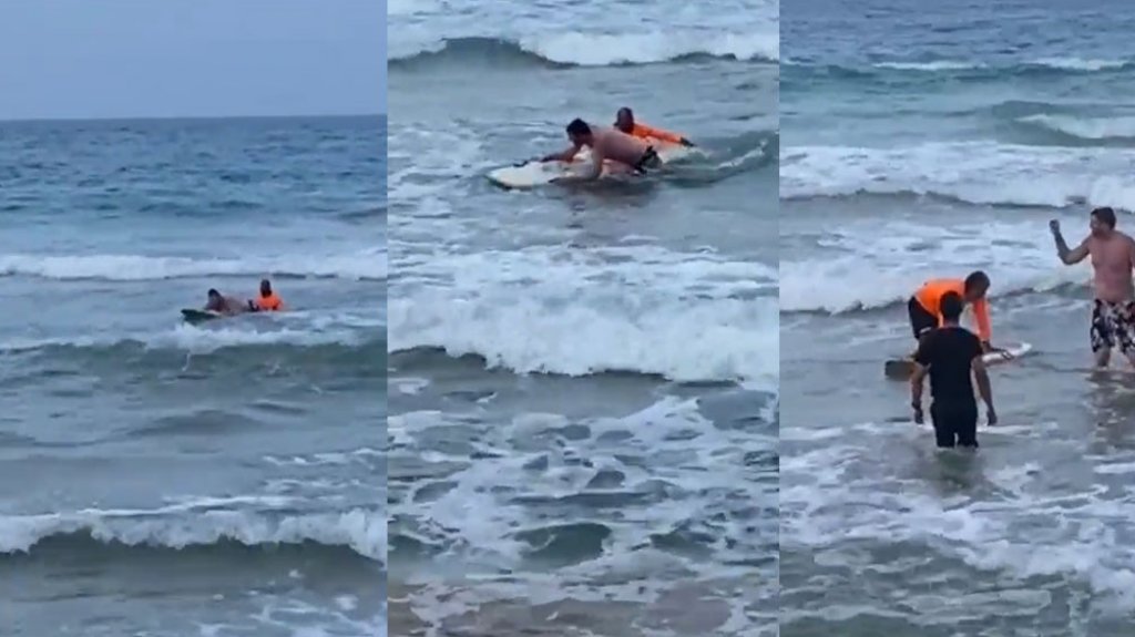 Video: Momento en que rescatan dos personas arrastradas por el mar en Luquillo