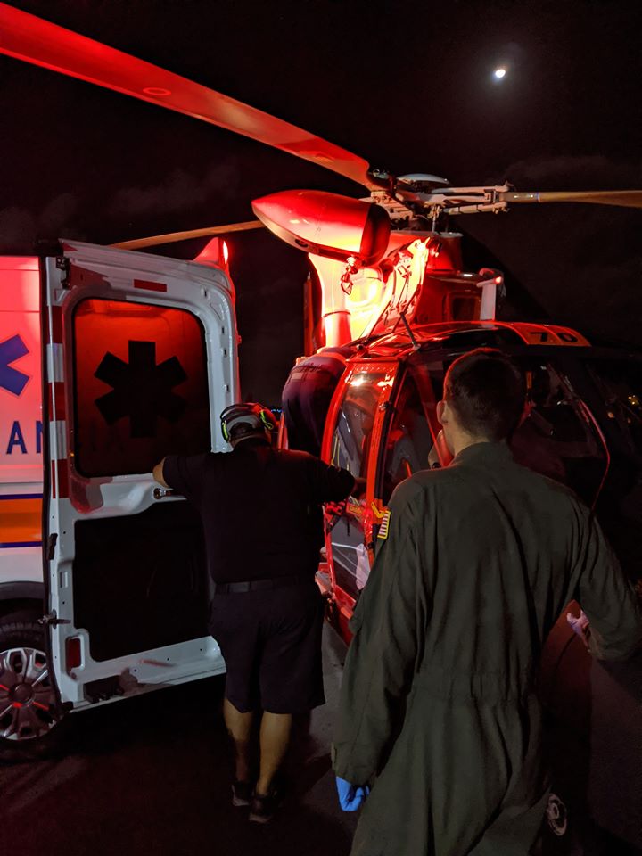 "El medevac de esta noche salió muy bien", dijo el teniente j.g. William Cox, copiloto del helicóptero Dolphin MH-65 para el caso "Elogiamos la profesionalidad de los servicios de EMS en Vieques y en San Juan en el cuidado y la facilitación de la transferencia sin problemas del paciente, lo que garantizó un éxito médico. Nuestro equipo está muy contento de haber podido ayudar a este caballero a alcanzar el nivel de atención más alto que necesitaba".