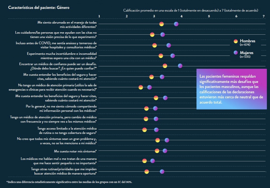 Al respecto, las mujeres con enfermedad en las arterias coronarias (CAD) informaron una experiencia más desafiante que sus contrapartes masculinas en todos los factores encuestados, incluido el acceso a la atención, los factores emocionales y las relaciones con sus médicos.