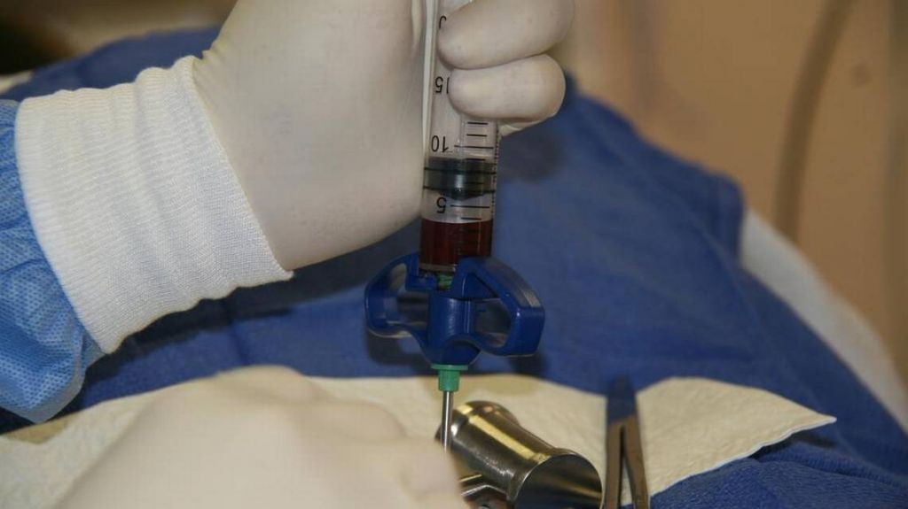 Después de explicarle todo concluimos que su rodilla izquierda necesitaba un implante de células madre de medula ósea y derivadas de grasa, autólogas, para evitar la cirugía de reemplazo. Decidimos no hacer nada con su rodilla derecha, pues el dolor era imperceptible.