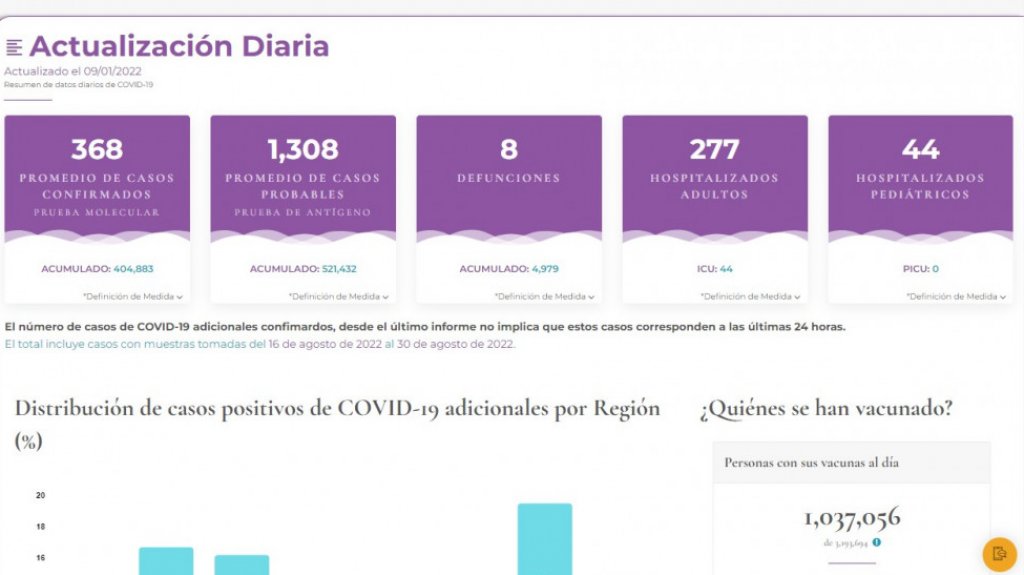 El informe de COVID-19 del Departamento de Salud (DS) reportó el jueves, sobre 368 casos positivos confirmados, 1,308 casos probables y ocho muertes.
