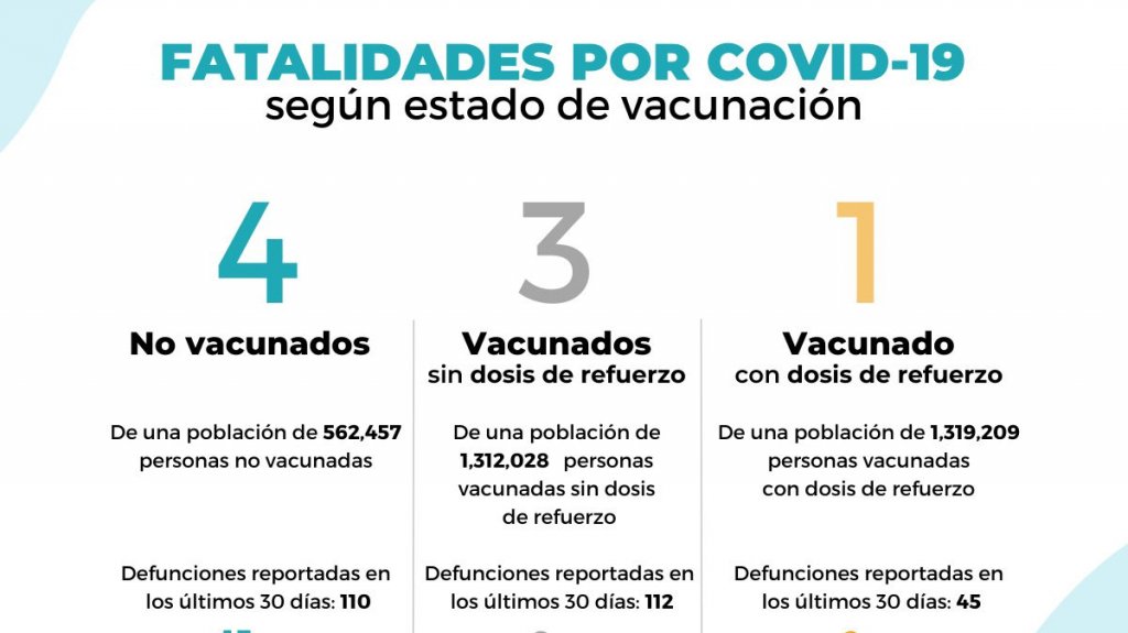 "Hoy se reportan ocho decesos a causa del Covid-19 y 82 personas hospitalizadas. La vacuna contra el Covid-19 ofrece mayor protección contra la enfermedad. Mantente al día, vacúnate con la dosis de refuerzo”, tuiteó hoy el Departamento de Salud.