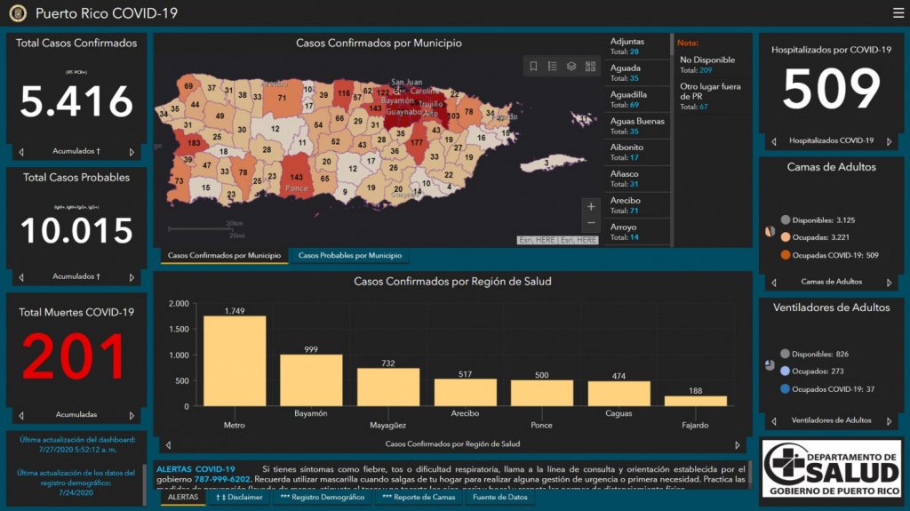Para más información, puede acceder directamente a través de la siguiente dirección https://statuscovid19.pr.gov o a través de la página web del Departamento de Salud www.salud.gov.pr/coronavirus.