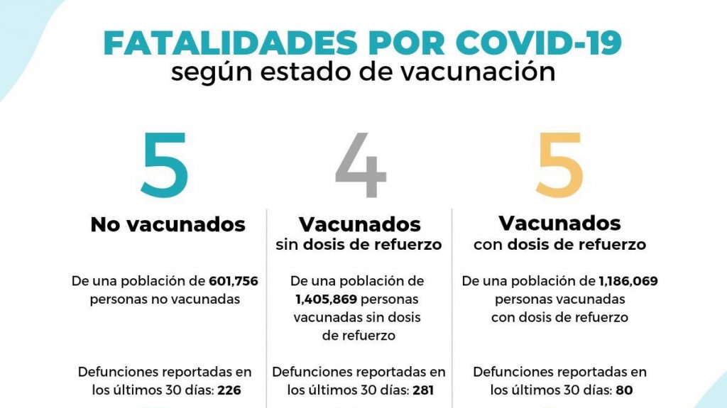 La tasa de mortalidad de Covid-19 en personas no vacunadas para los últimos 30 días es de 33 defunciones por cada 100 mil personas sin vacunarse, 17 defunciones por cada 100 mil sin dosis de refuerzo y seis de cada 100 mil personas con refuerzo.