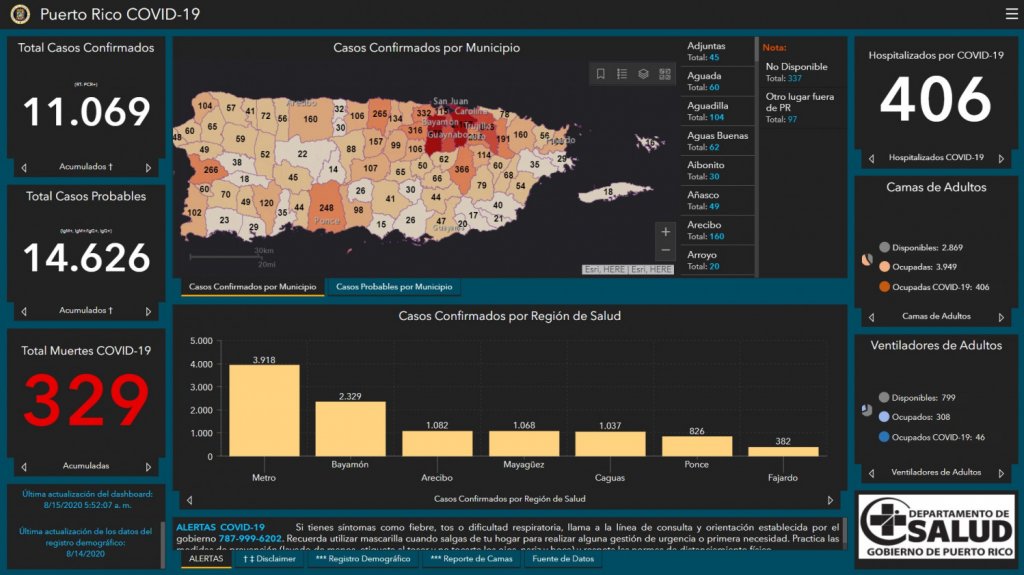 Para más información, puede acceder directamente a través de la siguiente dirección https://statuscovid19.pr.gov  o a través de la página web del Departamento de Salud www.salud.gov.pr/coronavirus.