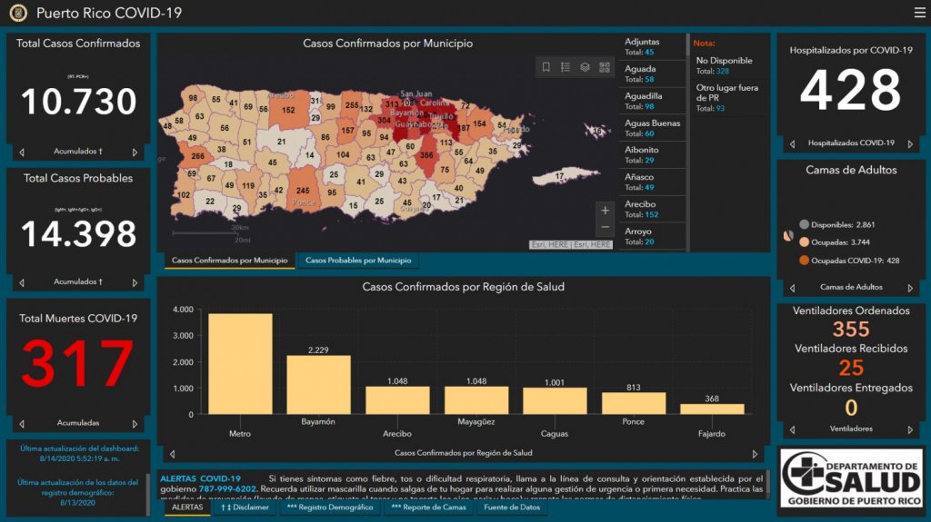 Para más información, puede acceder directamente a través de la siguiente dirección https://statuscovid19.pr.gov  o a través de la página web del Departamento de Salud www.salud.gov.pr/coronavirus.