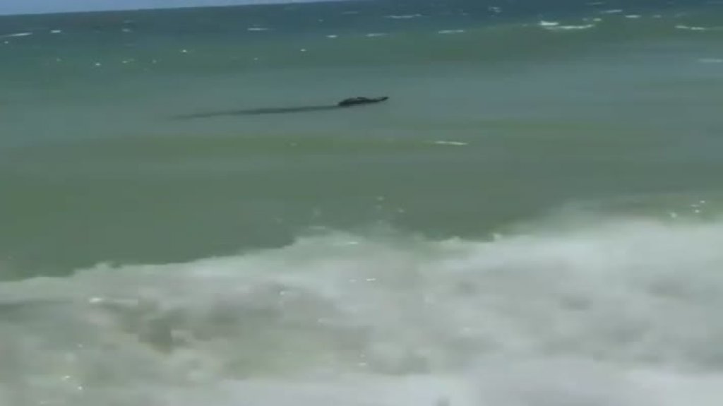 Este fin de semana un caimán dándose un chapuzón en la playa de Lover’s Key, Florida