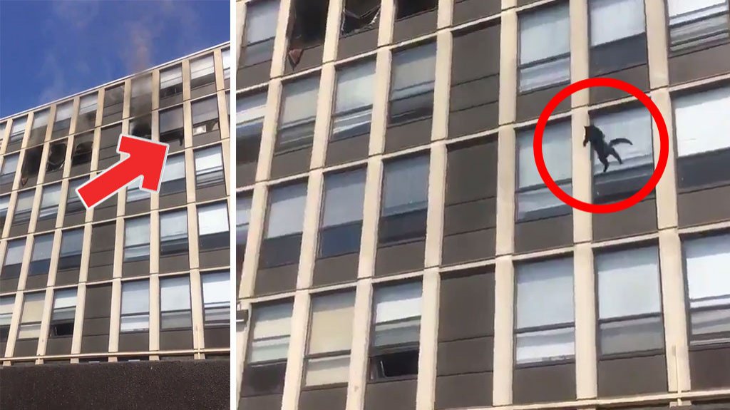 Video: Gato se lanza del quinto piso de un edificio en Chicago que se estaba quemando