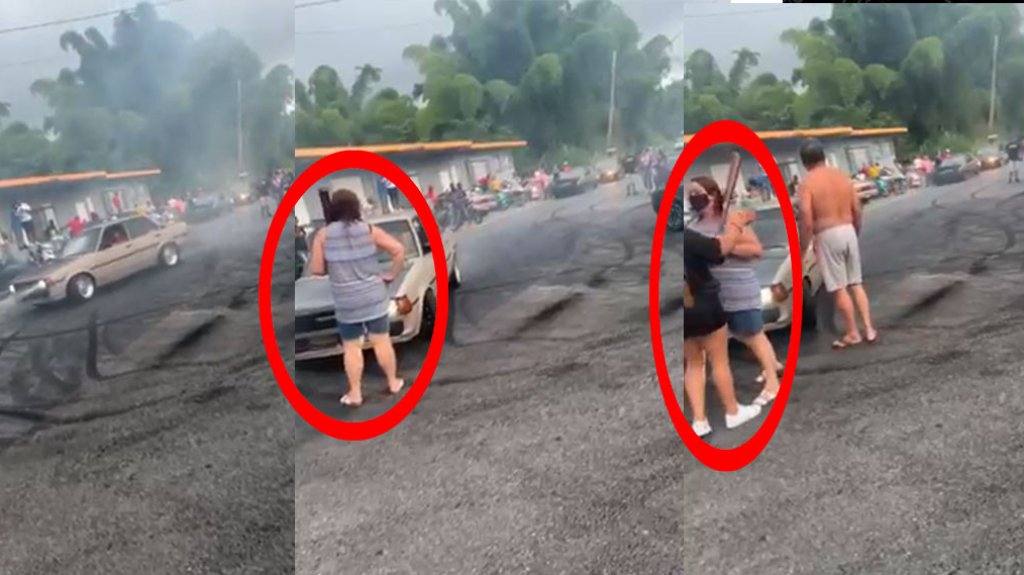 Luego de que varios "fiebrus de carros” invadieran la paz de varias familias chillando gomas, una doñita decidió salir con un bate en mano hacerles frente.