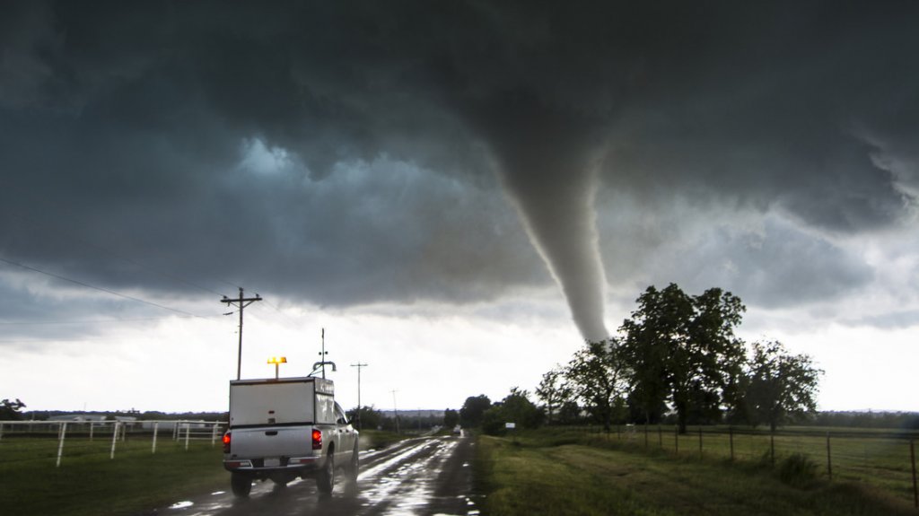 VIDEO: Una camioneta pasa a través de un tornado, cae de costado, da vueltas y sigue avanzando como si nada
