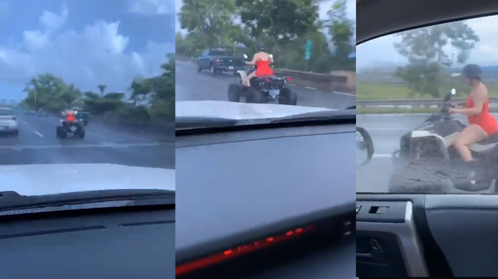 Video: Viral video de mujer transitando con “Four Track” por la autopista en PR