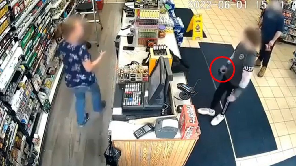 En video momento en que “chamaquito” de 12 años dispara durante un robo a gasolinera