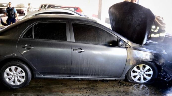 El fuego se registró esta mañana en un vehículo marca Toyota Corolla. Un vehículo Hyundai termino parcialmente quemado