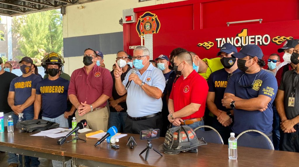 El presidente del Sindicato de Bomberos Unidos de Puerto Rico (SBUPR), José Tirado, en compañía de decenas de delegados del sindicato, en representación de todos los bomberos de la isla, urgió el jueves, al gobernador Pedro Pierluisi, a identificar los fondos para que no se deje sin efecto el ya concedido aumento salarial previsto por la Ley 181-2019.