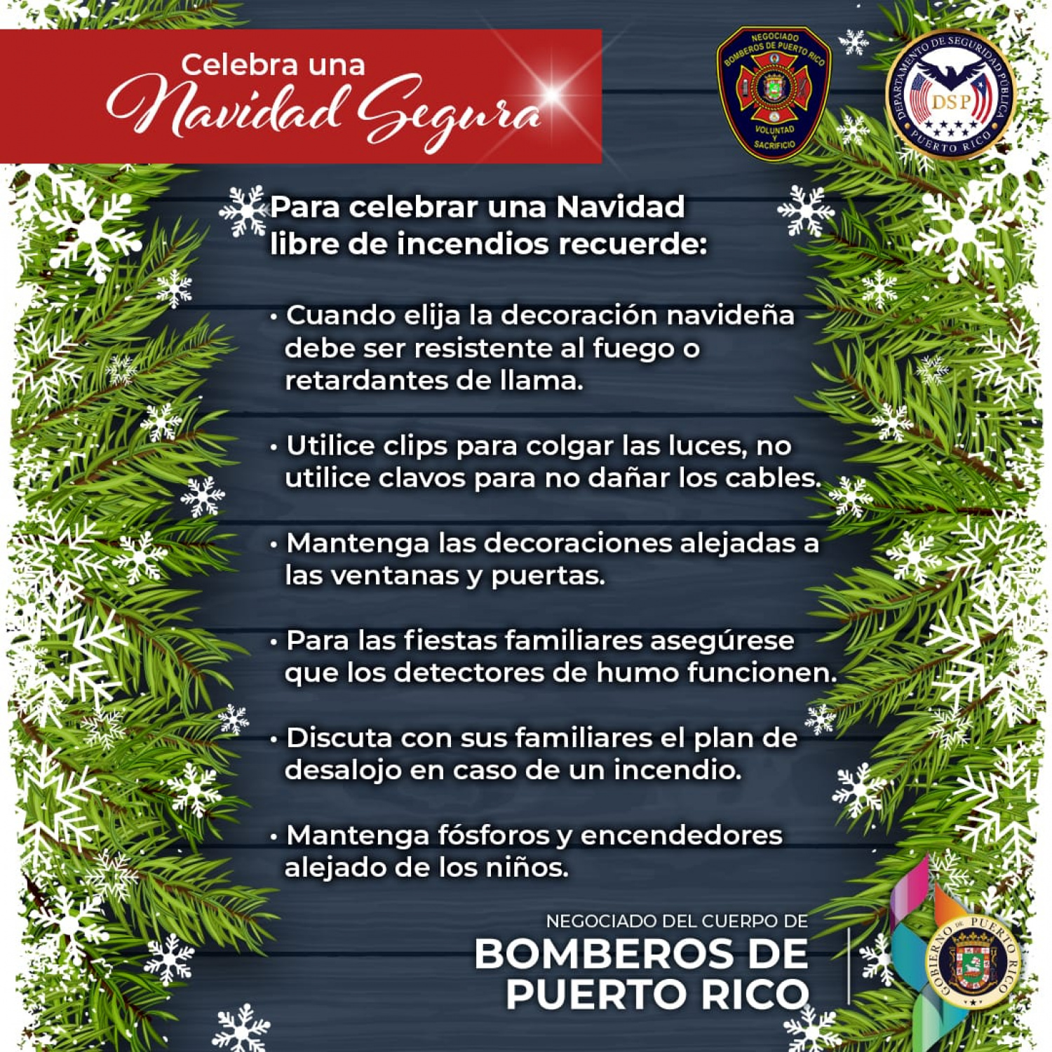El Negociado del Cuerpo de Bomberos (NCBPR) del Departamento de Seguridad Pública en Puerto Rico inició hoy su campaña Navidad Segura y ofreció recomendaciones para disfrutar la época navideña sin accidentes ni incendios que produzcan situaciones que lamentar.