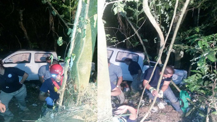 Al lugar llegaron los bomberos Enoc Echevarría y Juan Santos bajo la supervisión del sargento Carlos Oquendo junto a personal de la Oficina Municipal de Manejo de Emergencias, quienes tuvieron que utilizar sogas para llegar hasta donde quedo el auto y poder realizar el rescate.