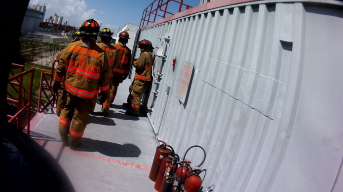 BOMBEROS RECIBEN ADIESTRAMIENTO PARA COMBATIR FUEGOS EN BARCOS