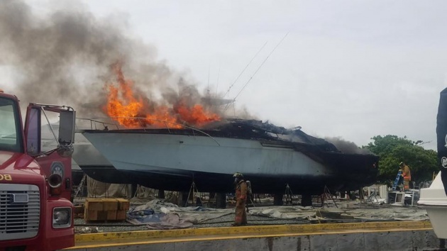 En estos momentos los bomberos ya lograron controlar un incendio que se originó en una lancha en Palmas del Mar.