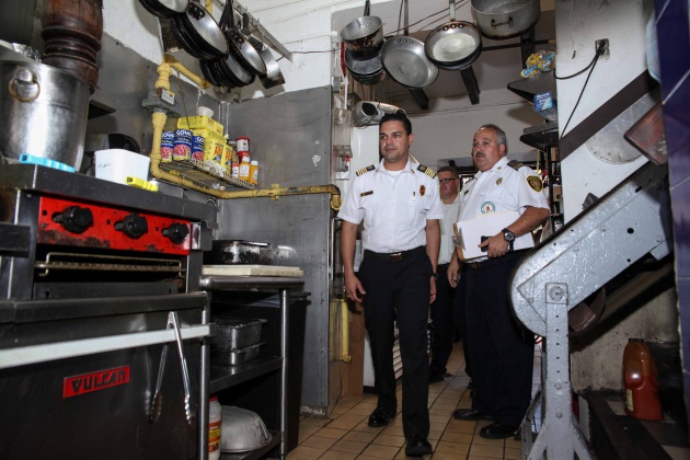 El jefe del Cuerpo de Bomberos de Puerto Rico, Ángel A. Crespo Ortiz, inspeccionó hoy los comercios del Viejo de San Juan, de cara a la celebración en enero de las Fiestas de la calle San Sebastián.