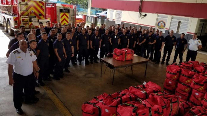 El funcionario explicó que hoy inició la entrega de 175 equipos de protección (Bunker Suit) a bomberos que recientemente fueron graduados y asignados a las diferentes estaciones en la isla.  El costo de dicho equipo es de 3,093.95 cada uno. El costo total es de $541,441.25 y fueron asignados a través de fondos estatales. El equipo está compuesto por una chaqueta o capa, pantalón, capacete, protector de rostro, guantes y linterna con su bulto.